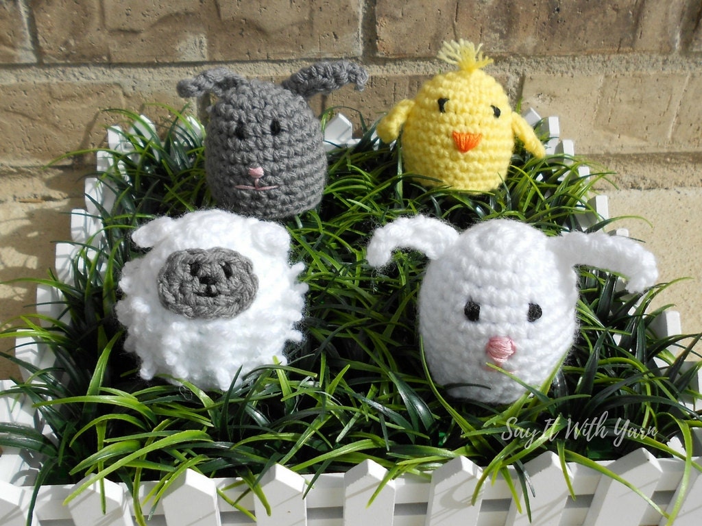 This set of Easter egg cozies are the perfect addition to your Easter dinner table. Each set contains one chick, one lamb, and either one or two bunnies.